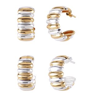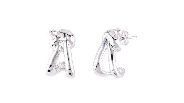 Brinco JuditeBerenice Abraço Curvado – dois corpos que se inclinam em sussurro eterno, curvas douradas ou prateadas que se entrelaçam num gesto de intimidade silenciosa. Forma abstrata que dança leve contra a pele, capturando luz como um segredo compartilhado. Banhado a ouro 18K ou prata 925, selado por verniz que guarda o brilho para sempre. Pequeno, ousado, profundo. Use sozinho ou em eco com a coleção — e deixe as orelhas contarem sua história de desejo e delicadeza.
